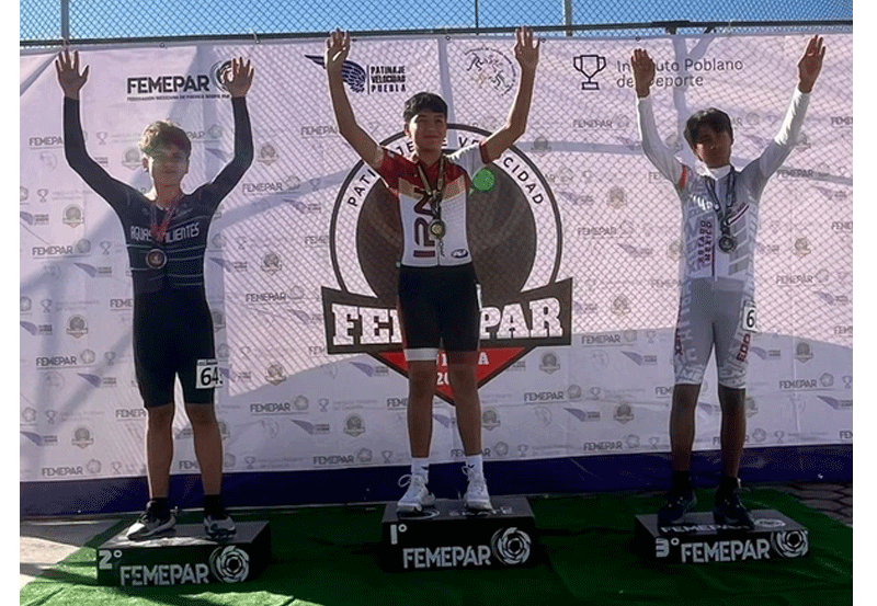 Carlos Monsiváis se llevó tres medallas de oro en los 200 metros meta contra meta, 500 metros más distancia y vuelta al circuito; plata en los 100 metros carriles, y bronce en los 1000 metros sprint, en la categoría Mayor Varonil.