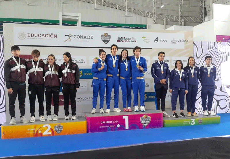 En la misma disciplina, pero en la modalidad de equipo de relevo 4×100 combinados, Bryan Martínez Montejo, Santiago Zaragoza Reyes, Dhalia Jiménez Saldaña y María del Rosario Herrera conquistaron la medalla de bronce en la categoría de 17 a 18 años.