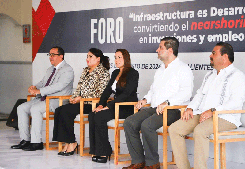 La gobernadora de Aguascalientes, Tere Jiménez, inauguró el Foro “Infraestructura es Desarrollo: Convirtiendo el Nearshoring en Inversión y Empleo”, donde aseguró que Aguascalientes tiene la infraestructura necesaria para recibir empresas, a través de esta estrategia comercial de relocalización de factorías.