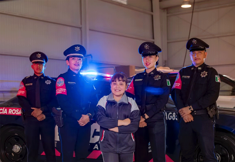 La Policía Rosa de la Secretaría de Seguridad Pública del Estado es un modelo pionero a nivel nacional; actualmente, este grupo se integra por 35 mujeres y hombres que crean entornos seguros al brindar auxilio, resguardo, orientación y acompañamiento a mujeres, niñas y niños.