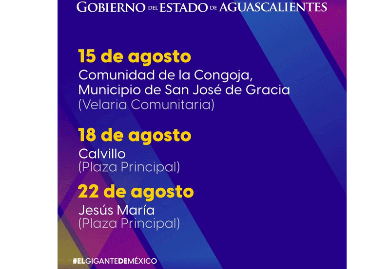 Estas jornadas también se llevarán a varias comunidades rurales para acercar los servicios de salud a más personas. El 15 de agosto estarán en La Congoja, en el municipio de San José de Gracia; el 18 de agosto en la plaza principal de Calvillo; y el 22 de agosto en la plaza principal de Jesús María.