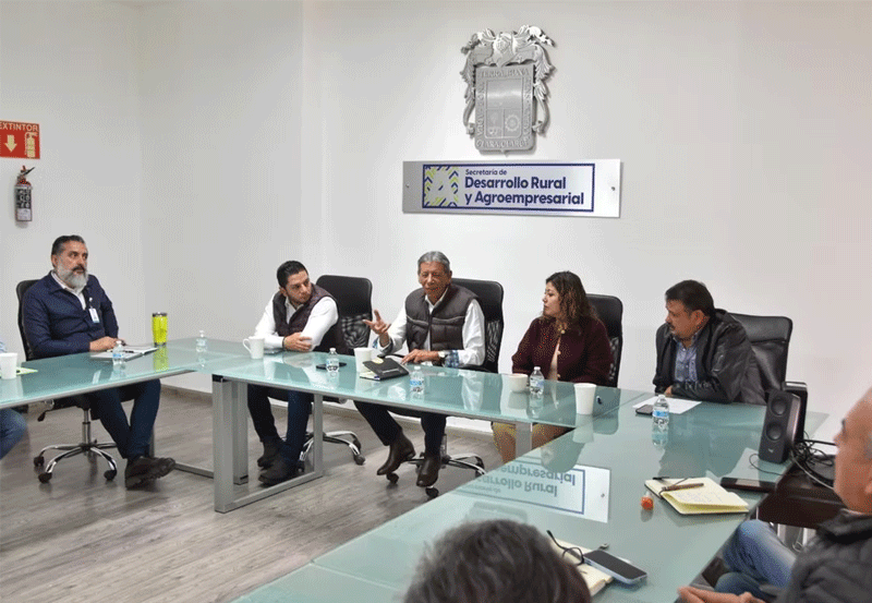 En seguimiento a los acuerdos de la reunión que encabezó la gobernadora Tere Jiménez el pasado 15 de noviembre con productores locales, el titular de la Secretaría de Desarrollo Rural y Agroempresarial del Estado (Sedrae), Isidoro Armendáriz, se reunió con el delegado en Aguascalientes de la Secretaría de Agricultura y Desarrollo Rural (Sader), Kristian Vera Guerrero; la delegada de la Comisión Nacional del Agua (Conagua), Rocío Reyes Gaytán, y el responsable de Zona Comercial Aguascalientes de la Comisión Federal de Electricidad (CFE), Oscar Daniel Garibay Soria, con la finalidad de brindar todas las facilidades para que las y los productores del campo de Aguascalientes mantengan en regla sus concesiones de agua para uso agrícola y tengan acceso a una cuota energética especial para el sector.