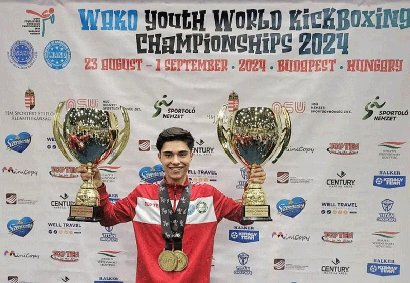 Durón Villarreal obtuvo hace unos días dos medallas de oro: una en Formas Musicales y otra en Formas Creativas; así como una de bronce en Pelea por Puntos, durante la competencia internacional WAKO Youth World Kickboxing Championship 2024, que se llevó a cabo en Budapest, Hungría, y en la que se enfrentó a representantes de Italia, Hungría, Gran Bretaña, Venezuela, Guatemala, entre otros países.