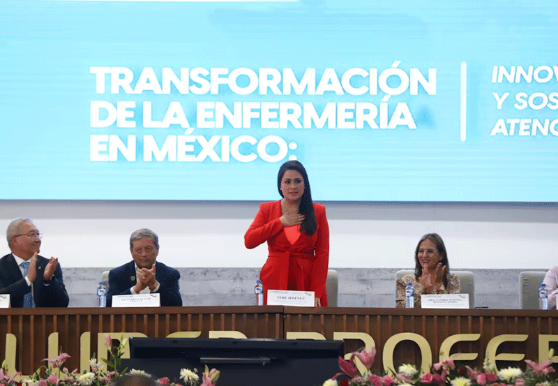 Felicitó a los participantes en este congreso que se desarrolló bajo el tema “Transformación de la Enfermería en México: Innovación, Liderazgo y Sostenibilidad en la Atención a la Salud”, con el objetivo de actualizar y mejorar las habilidades y aptitudes de los profesionales de la enfermería ante los retos y desafíos de los nuevos tiempos.