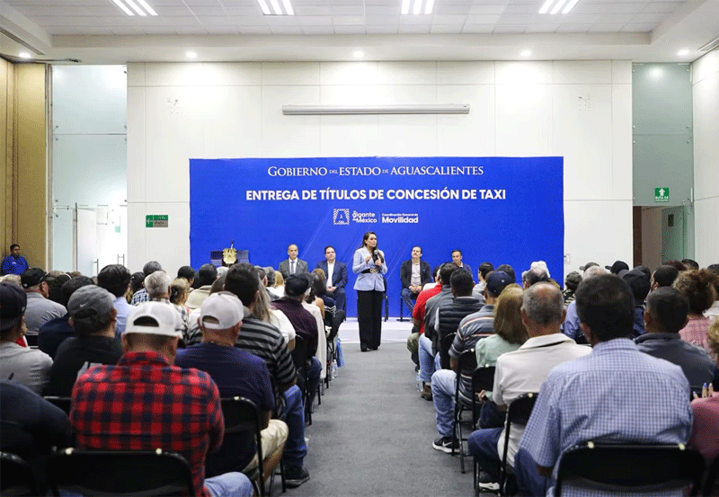 Con el objetivo de seguir mejorando el transporte público en Aguascalientes, la gobernadora Tere Jiménez entregó 73 renovaciones de títulos de concesión para taxis y combis, con el fin de que los concesionarios puedan operar con certeza jurídica.