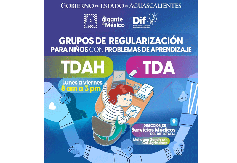 ¿Tu hijo o hija tiene dificultad para concentrarse, seguir instrucciones o aprender en la escuela? El Sistema Estatal para el Desarrollo Integral de la Familia (DIF) pone a tu disposición el servicio de regularización escolar, diseñado especialmente para quienes presentan dificultades de aprendizaje asociadas al trastorno por déficit de atención e hiperactividad (TDAH).