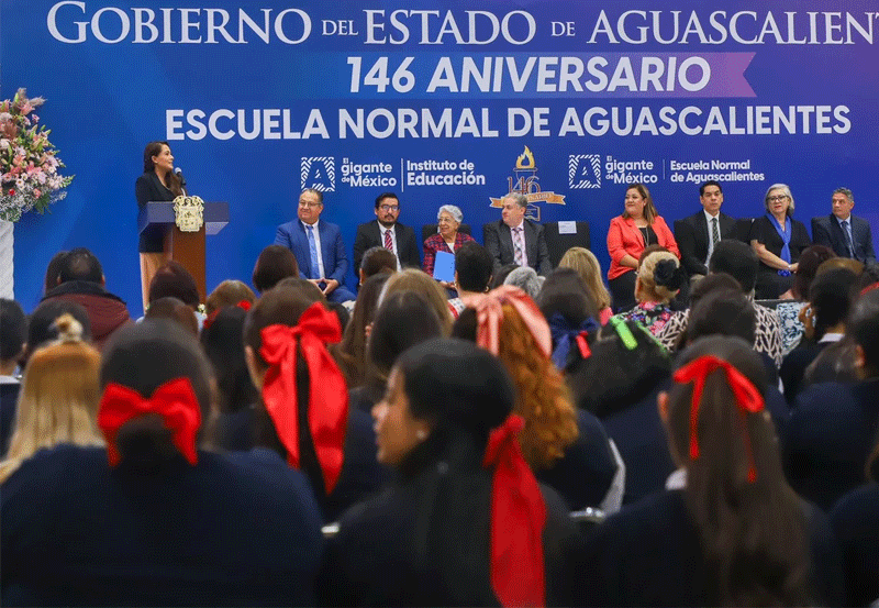 La gobernadora de Aguascalientes, Tere Jiménez, encabezó la celebración del 146 aniversario de la Escuela Normal de Aguascalientes (ENA), reconocida por preparar docentes de educación básica con una formación integral y humanista.