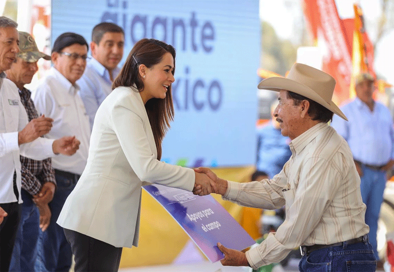 “El día de hoy se entregan apoyos muy importantes para el campo. Mucho ánimo, vamos a seguir trabajando de la mano con ustedes. No están solos, estamos acompañados y hay que hacer fuerza en el Gigante de México”, apuntó la gobernadora.