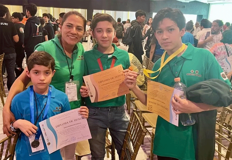 Las medallas de plata las obtuvieron Alonso de Lira Medina, de la Escuela Secundaria General No. 2 José Clemente Orozco, en la categoría de segundo de secundaria, y Diego Rodríguez Medina, del Colegio Bosques International School, en la categoría de cuarto de primaria.