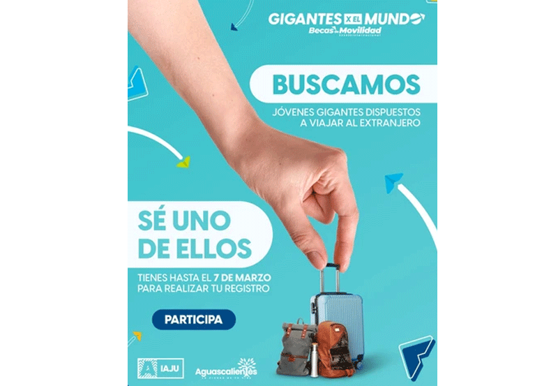 Debido a la buena respuesta de las y los jóvenes al programa “Gigantes por el Mundo, Jóvenes de Clase Mundial”, el Gobierno del Estado y la Presidencia Municipal de Aguascalientes informan que la convocatoria se extenderá hasta el próximo 7 de marzo para que más aspirantes puedan realizar su registro.