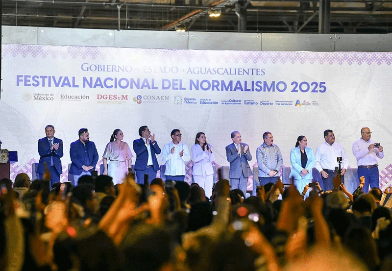 La gobernadora de Aguascalientes, Tere Jiménez, inauguró el Segundo Festival Nacional del Normalismo Calpulli 2025, que reúne a más de 8 mil asistentes de la comunidad normalista de todo el país, quienes participan en talleres, muestras y representaciones artísticas y culturales en el Fideicomiso Complejo Tres Centurias (Ficotrece); el evento concluye el 26 de septiembre.