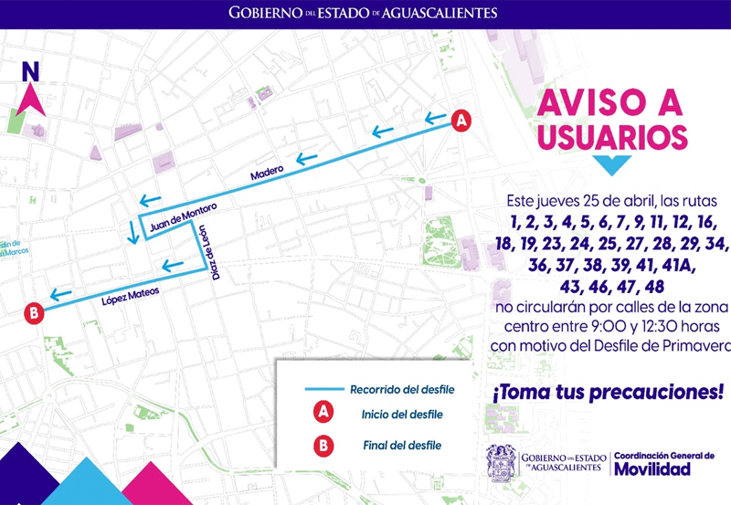 El Gobierno del Estado informa que con motivo de los cierres viales que habrá la mañana de este jueves 25 de abril por el Desfile de Primavera, 31 rutas de camiones urbanos tendrán modificaciones de manera temporal.