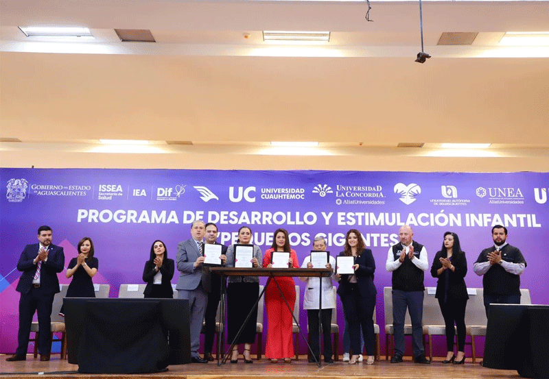 La gobernadora de Aguascalientes, Tere Jiménez, puso en marcha el esquema de Desarrollo y Estimulación Infantil “Pequeños Gigantes”, con el objetivo de brindar una atención profesional, gratuita y de mayor cobertura a las niñas y niños desde la etapa prenatal hasta los 5 años 11 meses de edad.