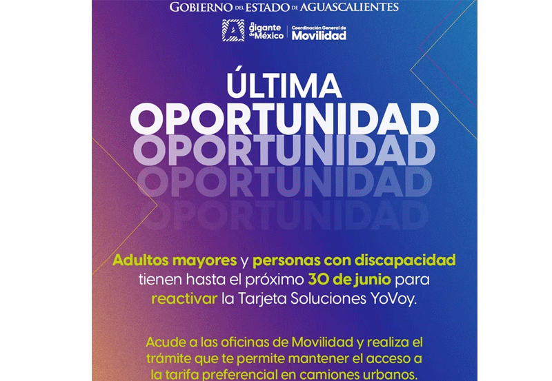 Las personas que ya cuentan con esta tarjeta, tienen hasta el 30 de junio para realizar el trámite de reactivación, el cual es completamente gratuito y les permitirá conservar el beneficio de la tarifa preferencial por un año más. Este trámite debe realizarse en las oficinas de la Coordinación General de Movilidad, en un horario de lunes a viernes de 8:00 a 15:00 horas.