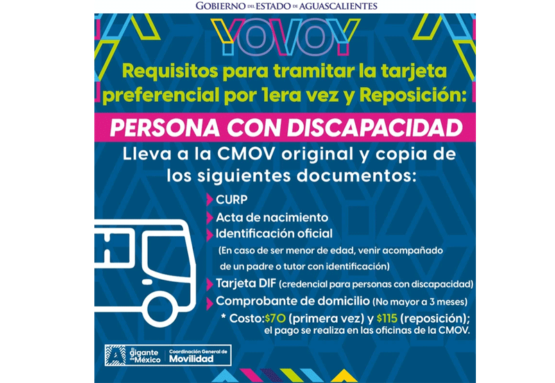 El Gobierno del Estado, a través de la Coordinación General de Movilidad (CMOV), informó que adultos mayores y personas con discapacidad tienen hasta el 31 de julio para tramitar por primera vez la Tarjeta Soluciones YoVoy, con la cual pueden tener acceso a la tarifa preferencial en los camiones urbanos.