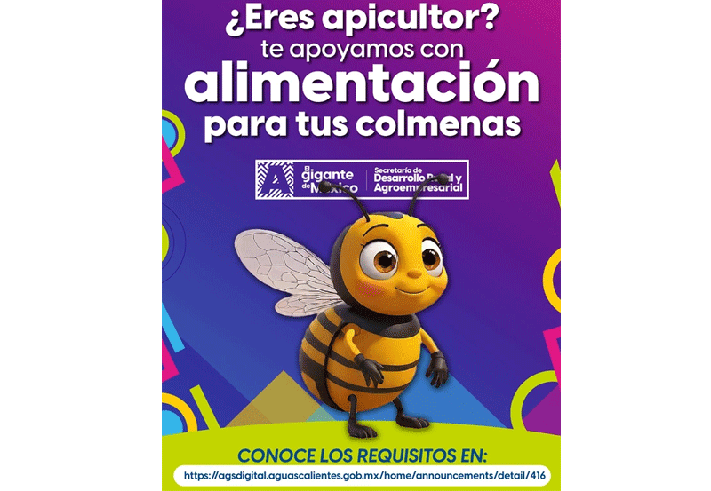 Con el objetivo de fortalecer la apicultura en el estado, la gobernadora de Aguascalientes, Tere Jiménez, anunció la apertura del Programa de Apoyo para la Adquisición de Azúcar y/o Fructosa para Alimentación Apícola, y así impulsar los productos derivados de esta actividad que es básica para el rubro agroalimentario.