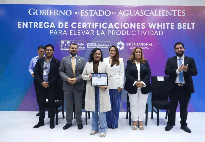 La gobernadora de Aguascalientes, Tere Jiménez, encabezó la entrega de certificaciones a 274 trabajadores que culminaron el curso White Belt de la metodología internacional Lean Six Sigma; esta capacitación brinda las herramientas para mejorar la calidad de los productos y procesos en las industrias, reduciendo los tiempos y cuidando los recursos naturales.
