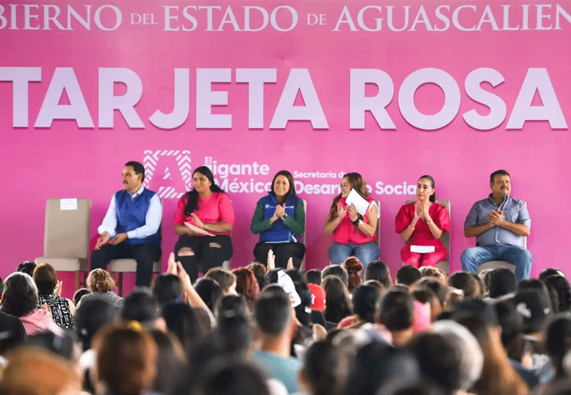 La gobernadora de Aguascalientes, Tere Jiménez, entregó 200 Tarjetas Rosas a mujeres de Pabellón de Arteaga, con la que tendrán acceso a un apoyo económico bimestral en reconocimiento a su trabajo a favor de sus comunidades. Este año, la meta es beneficiar a 3 mil mujeres que son agentes de cambio.