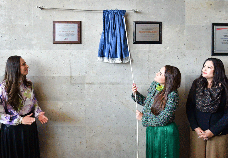 La gobernadora de Aguascalientes, Tere Jiménez, encabezó la develación de la Placa de Recertificación del Centro de Justicia para Mujeres (CJM), con lo que se garantiza una atención integral, de calidad y con protocolos actualizados para las mujeres, niñas y adolescentes que atraviesan por situaciones de riesgo.