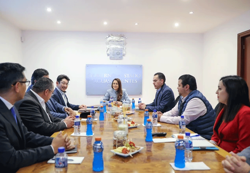 La gobernadora de Aguascalientes, Tere Jiménez, acompañada del secretario de Desarrollo Económico, Ciencia y Tecnología, Manuel Alejandro González Martínez, se reunió con Tomoaki Inoue, presidente y director general de Jatco México.
