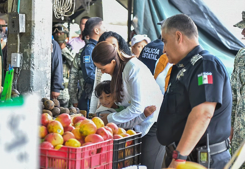 La gobernadora de Aguascalientes, Tere Jiménez, realizó un recorrido por el Centro Comercial Agropecuario para supervisar personalmente los operativos de seguridad que se realizan de forma permanente en este lugar, y escuchar las inquietudes y planteamientos de los locatarios.