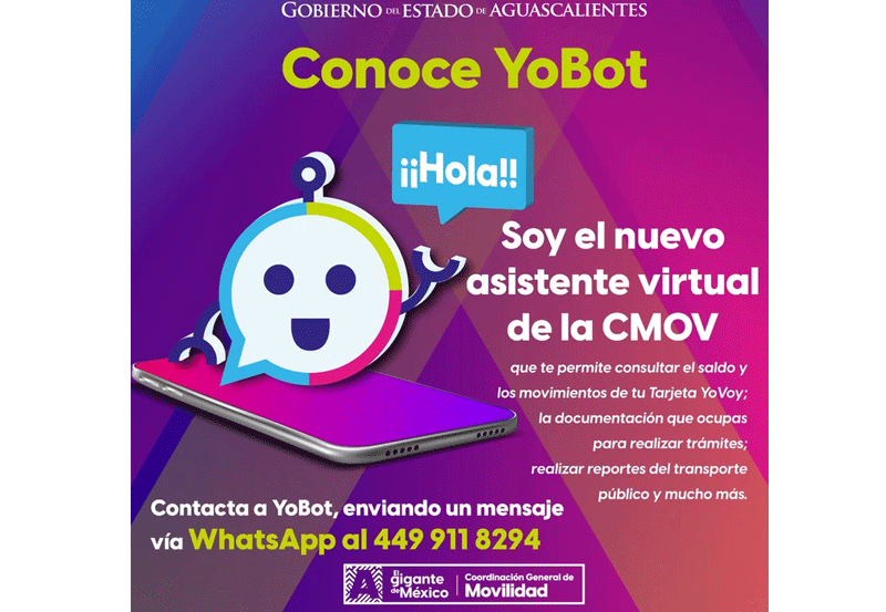 El Gobierno del Estado dio a conocer un nuevo asistente virtual llamado YoBot que permitirá mejorar la atención a usuarios del transporte público a través de consultas, reportes y sugerencias sobre camiones urbanos, taxis y combis.
