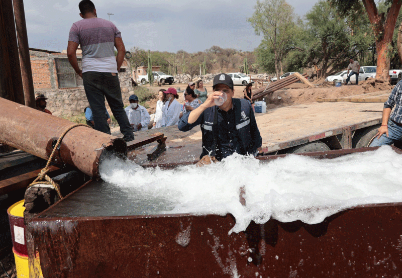 Leo Montañez, comentó que el aforo tiene la finalidad de medir los litros por segundo que se podrán extraer de agua de los pozos, así como la limpieza de los mismos, por lo que señaló que el pozo P-091A podría llegar a un bombeo que arroje la cantidad aproximada de 80 litros por segundo, mientras que el pozo P-146 un aproximado de 40 a 50 litros, para que pueda llegar el agua a los domicilios en óptimas condiciones.