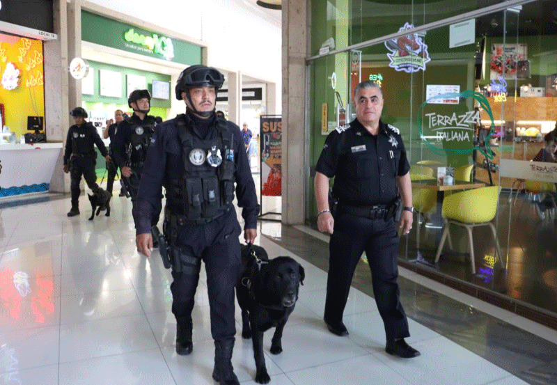 Antonio Martínez apuntó que la instrucción al cuerpo policial es de reforzar la vigilancia en estos sitios, así como la proximidad con el sector comercial y con la ciudadanía en general para que todos puedan sentirse resguardados por los oficiales de la Policía Comercial y en su caso con el refuerzo de los recorridos que el Grupo K9 hace al interior y exterior de los mismos, en donde participaron en esta ocasión los binomios integrados por ejemplares como: Matt, Maya y Dexter, de razas labrador, pastor alemán y pastor holandés, los cuales están entrenados para detectar sustancias prohibidas, armas y en acciones de protección policial.